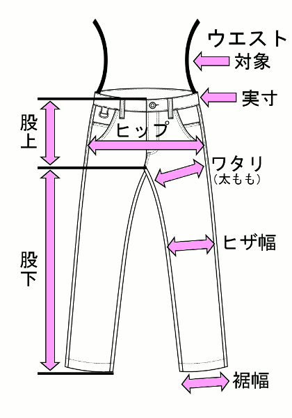 わたり36cm/膝幅35cm/裾幅37cm